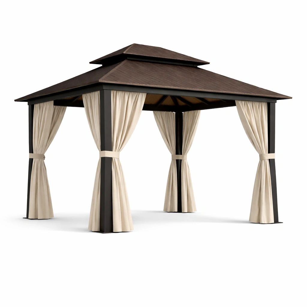 Gazebo in alluminio con tetto in policarbonato e tendaggi in poliestere